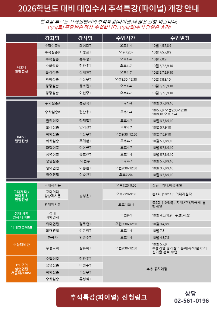 수시전형 성공을 위한 적중률 높은 심층 면접 및 논술 수업